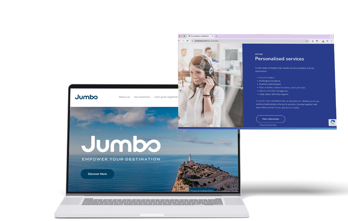 Desarrollamos piezas gráficas online y offline para asegurar una imagen coherente y atractiva en cada uno de sus servicios y experiencias, desde creatividades en stands de ferias como FITUR hasta sus redes sociales o elementos corporativos.